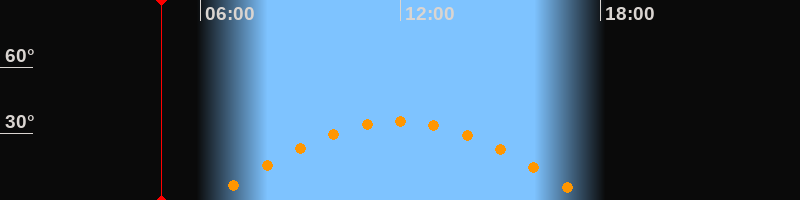| Aufgang | 06:13 Uhr im Osten (αAz = 95,5°) |