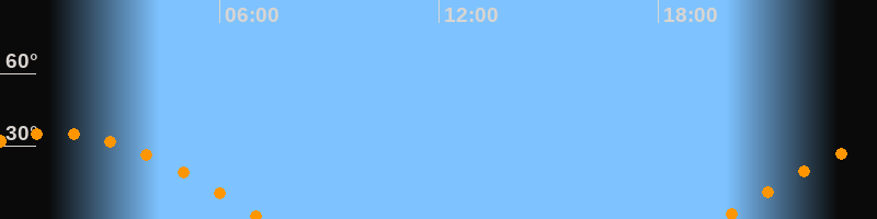| Untergang | 07:13 Uhr im Westen (αAz = 264,5°) |