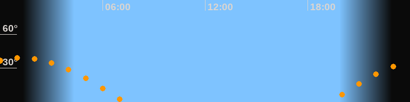 | Aufgang | 19:12 Uhr im Osten (αAz = 89,4°) |