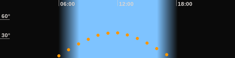 | Höchster Stand (Kulmination) | 11:35 Uhr (h = 39,2°) |