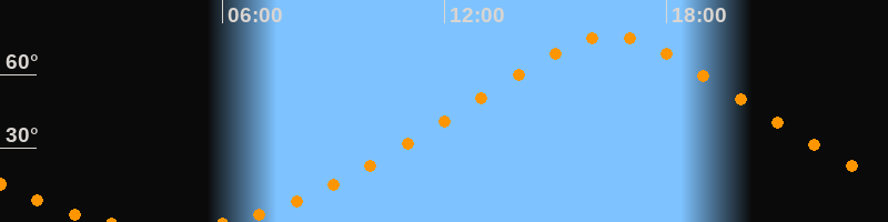 Höchster Stand (Kulmination)16:29 Uhr (h = 75,7°)