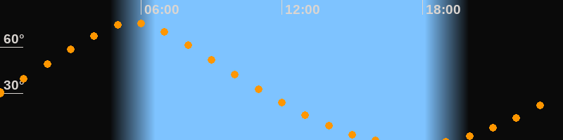 Höchster Stand (Kulmination)05:39 Uhr (h = 75,7°)