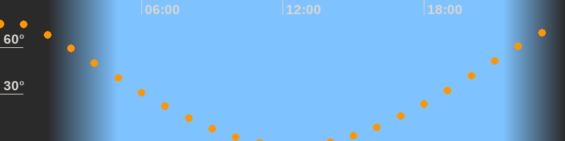 Höchster Stand (Kulmination)00:23 Uhr (h = 75,7°)