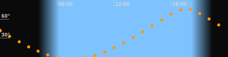 Höchster Stand (Kulmination)19:34 Uhr (h = 75,7°)