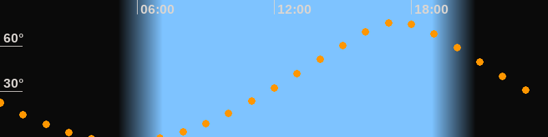 Höchster Stand (Kulmination)17:24 Uhr (h = 75,7°)