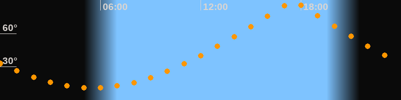 | Höchster Stand (Kulmination) | 17:30 Uhr (h = 89,7°) |