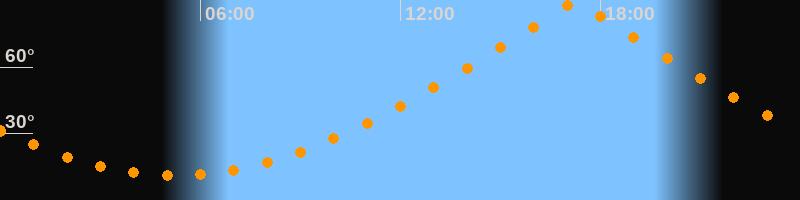 | Höchster Stand (Kulmination) | 17:15 Uhr (h = 89,7°) |