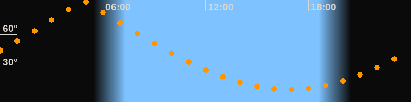 | Höchster Stand (Kulmination) | 04:52 Uhr (h = 89,7°) |