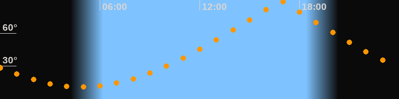 | Höchster Stand (Kulmination) | 16:52 Uhr (h = 89,7°) |