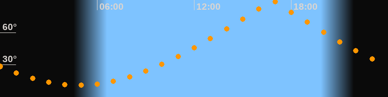 | Höchster Stand (Kulmination) | 16:50 Uhr (h = 89,7°) |