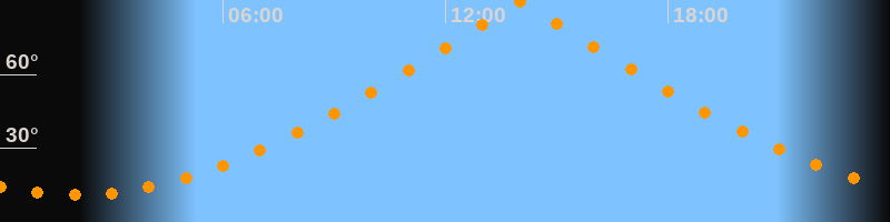 | Höchster Stand (Kulmination) | 14:01 Uhr (h = 89,7°) |