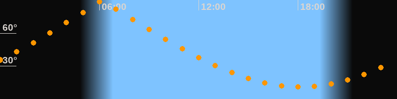 | Höchster Stand (Kulmination) | 06:09 Uhr (h = 89,7°) |