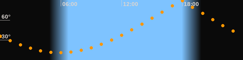 | Höchster Stand (Kulmination) | 17:53 Uhr (h = 89,7°) |