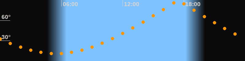 | Höchster Stand (Kulmination) | 17:26 Uhr (h = 89,7°) |