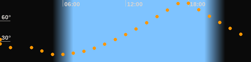 | Höchster Stand (Kulmination) | 17:31 Uhr (h = 89,7°) |