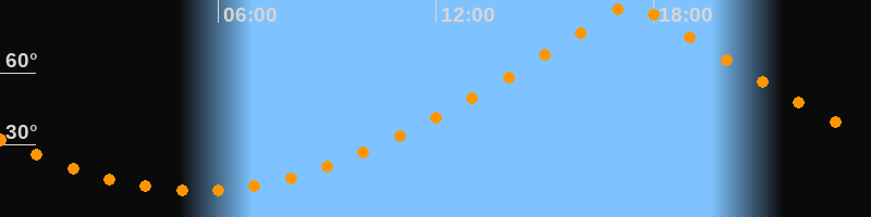 | Höchster Stand (Kulmination) | 17:23 Uhr (h = 89,7°) |