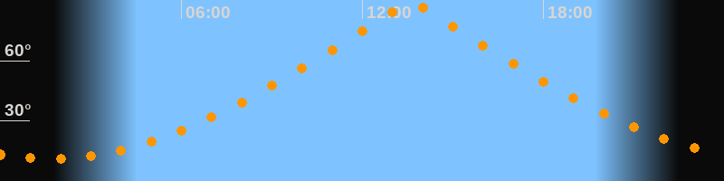 | Höchster Stand (Kulmination) | 13:37 Uhr (h = 89,7°) |