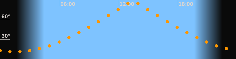 | Höchster Stand (Kulmination) | 13:30 Uhr (h = 89,7°) |