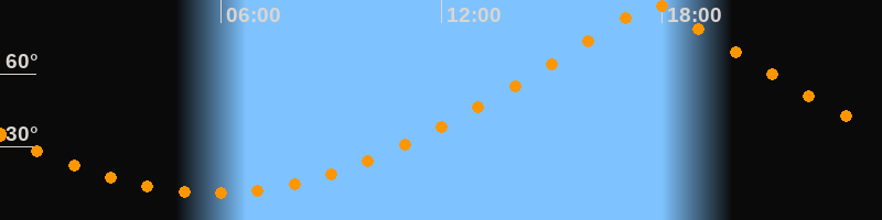 | Höchster Stand (Kulmination) | 17:46 Uhr (h = 89,7°) |