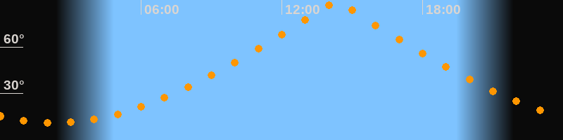| Höchster Stand (Kulmination) | 14:19 Uhr (h = 89,7°) |