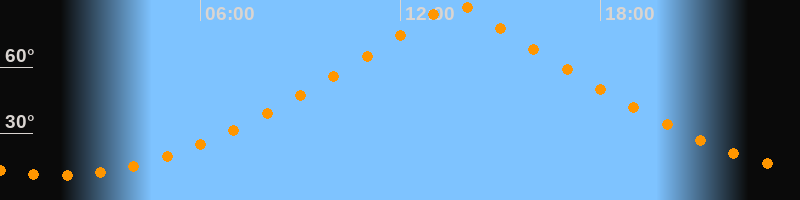 | Höchster Stand (Kulmination) | 13:39 Uhr (h = 89,7°) |