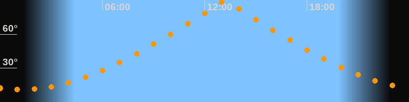 | Höchster Stand (Kulmination) | 13:12 Uhr (h = 89,7°) |