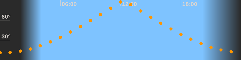 | Höchster Stand (Kulmination) | 12:17 Uhr (h = 89,7°) |