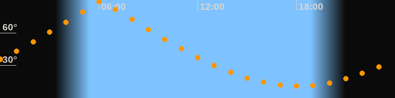 | Höchster Stand (Kulmination) | 06:07 Uhr (h = 89,7°) |