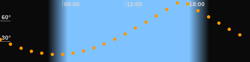 | Höchster Stand (Kulmination) | 17:24 Uhr (h = 89,7°) |