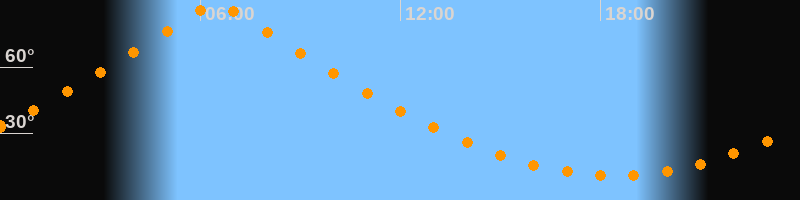 | Höchster Stand (Kulmination) | 06:28 Uhr (h = 89,7°) |