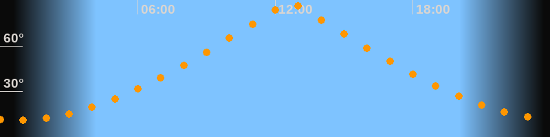 | Höchster Stand (Kulmination) | 12:38 Uhr (h = 89,7°) |