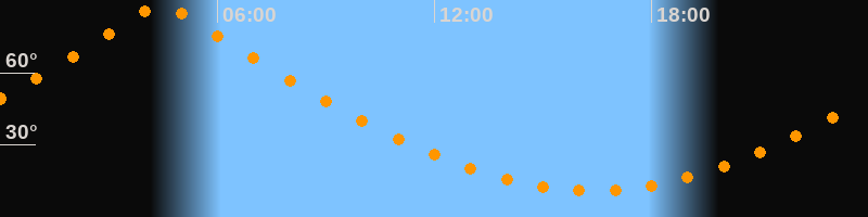 | Höchster Stand (Kulmination) | 04:27 Uhr (h = 89,7°) |