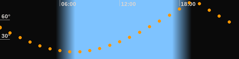 | Höchster Stand (Kulmination) | 19:24 Uhr (h = 89,7°) |