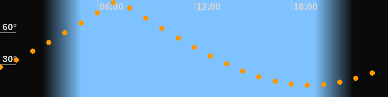 | Höchster Stand (Kulmination) | 07:13 Uhr (h = 89,7°) |