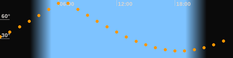 | Höchster Stand (Kulmination) | 06:30 Uhr (h = 89,7°) |
