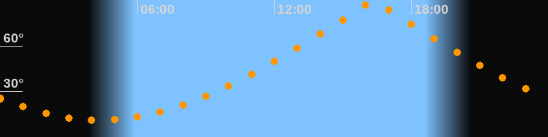 | Höchster Stand (Kulmination) | 16:20 Uhr (h = 89,7°) |