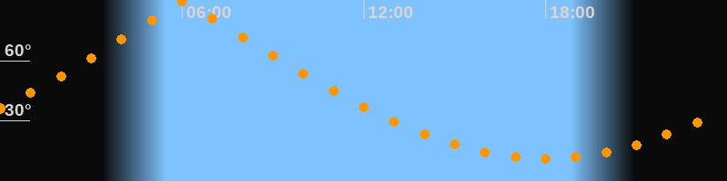| Höchster Stand (Kulmination) | 06:03 Uhr (h = 89,7°) |