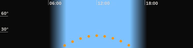 Höchster Stand (Kulmination)12:02 Uhr (h = 23,5°)