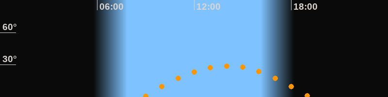 | Höchster Stand (Kulmination) | 14:00 Uhr (h = 29°) |