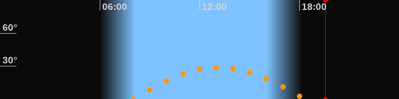 | Höchster Stand (Kulmination) | 13:08 Uhr (h = 29°) |