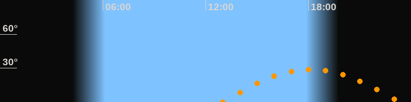 | Höchster Stand (Kulmination) | 18:08 Uhr (h = 29°) |