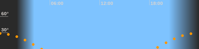 | Aufgang | 18:34 Uhr im Osten (αAz = 105,6°) |