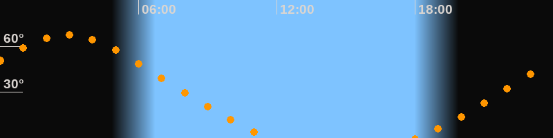| Aufgang | 18:00 Uhr im Nordosten (αAz = 40,3°) |