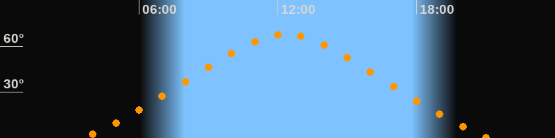 | Höchster Stand (Kulmination) | 12:19 Uhr (h = 67,6°) |