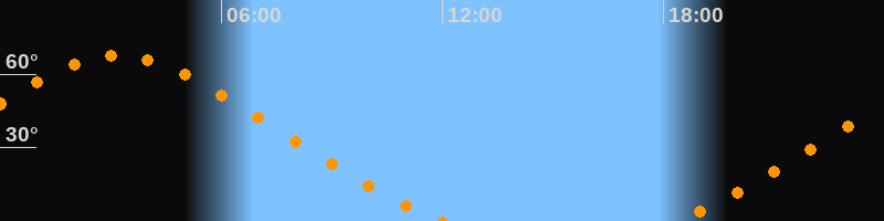 | Aufgang | 18:19 Uhr im Nordosten (αAz = 40,3°) |