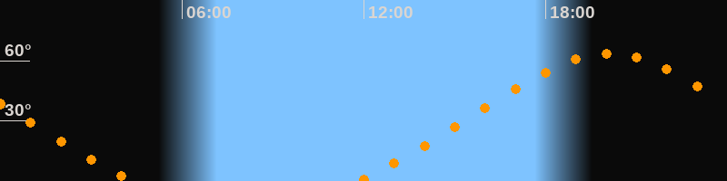 Höchster Stand (Kulmination)20:05 Uhr (h = 63,6°)
