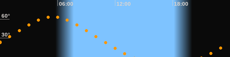 Höchster Stand (Kulmination)05:29 Uhr (h = 63,6°)