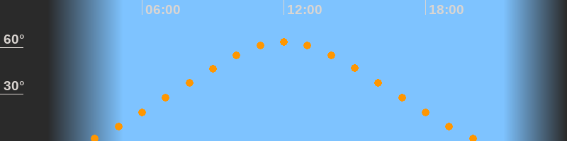 Höchster Stand (Kulmination)12:00 Uhr (h = 63,6°)