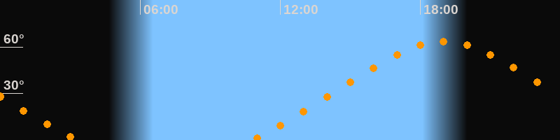 Höchster Stand (Kulmination)19:00 Uhr (h = 63,6°)