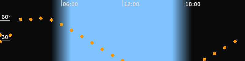Höchster Stand (Kulmination)03:53 Uhr (h = 63,6°)